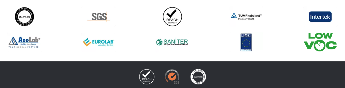 Den anvendte coating er testet af uafhængige laboratorier og produceret under certificerede kvalitetsprocesser, herunder blandt andre SGS, TÜV Rheinland, Intertek, EuroLab, AzoLab og Saniter.