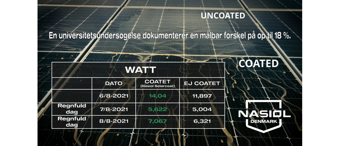 Nasiol Danmark repræsenterer en internationalt udviklet coatingteknologi med fokus på beskyttelse af energiproduktion fra solcelleanlæg.